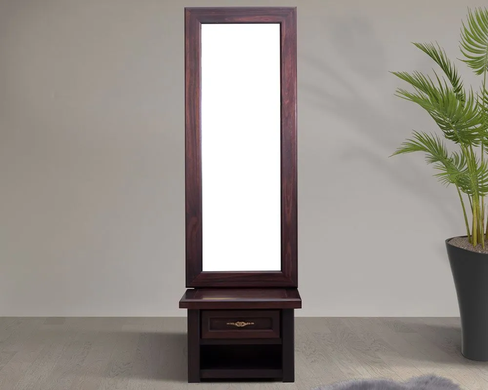 Our beautiful cheval dresser features a full-length mirror that tilts to provide the perfect angle for getting ready in the morning, as well as a drawer and shelf for storing clothes and accessories. The real wood construction ensures that this cheval dresser is durable and will last for years to come.