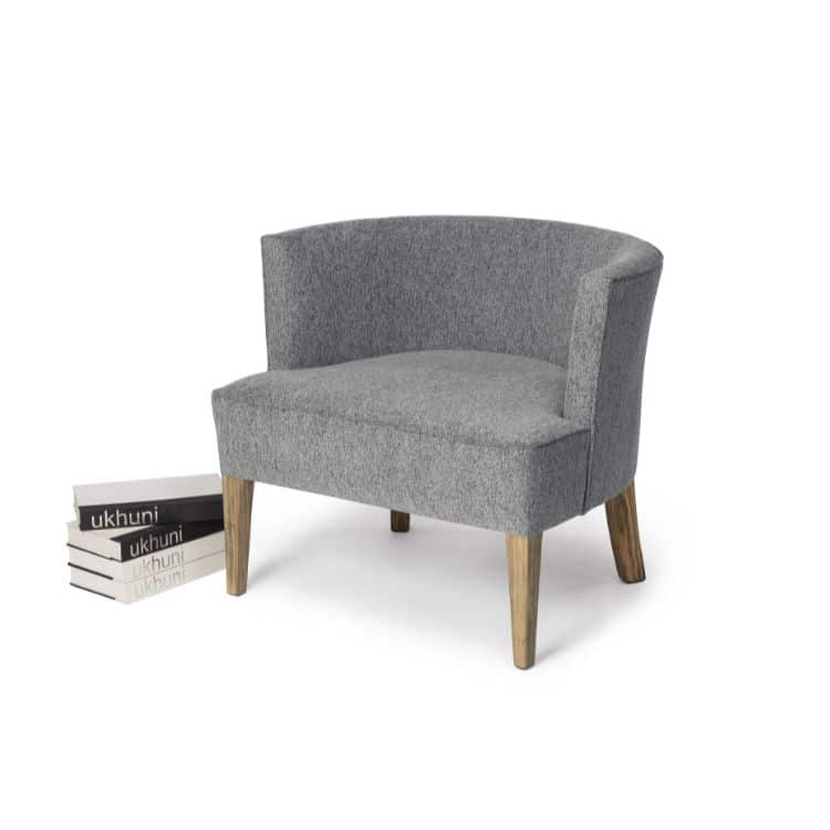 Upholstered back and a fixed upholstered cushion with beech legs.