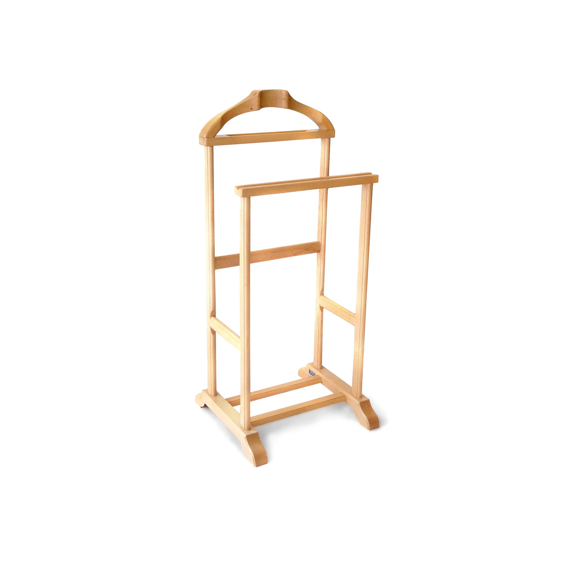 Dumb Valet – 440mm(l) x 430mm(b) x 1020mm(h). Pictured in Canadian Maple with brushed wooden shoe-rack rails. The Dumb Valet is a wonderful accessory to any dressing room or bedroom.