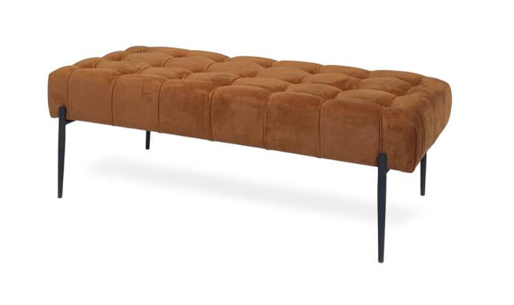 This retro two-seat bench ottoman makes a welcome addition to any interior. Fully upholstered with line detail and tapered steel legs available in a variety of powder coat finishes. Available with and without the table.