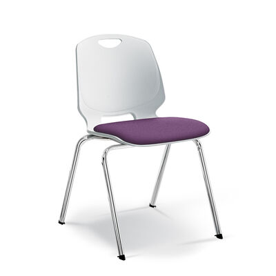 High specification chair with polyprop shell on scratch resistant Chrome frame or lower price Silver epoxy frame. BIFMA tested. Optional upholstered seat panel. Stackable 8 high.