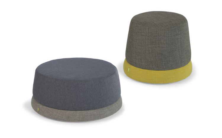 An organically shaped upholstered ottoman available in two sizes. A multi-directional stretch fabric is required for upholstery.