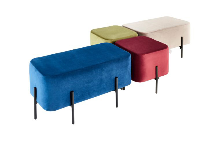 Upholstered seat in a medium density polyurethane foam. The legs feature a tubular epoxy with various finishes available.